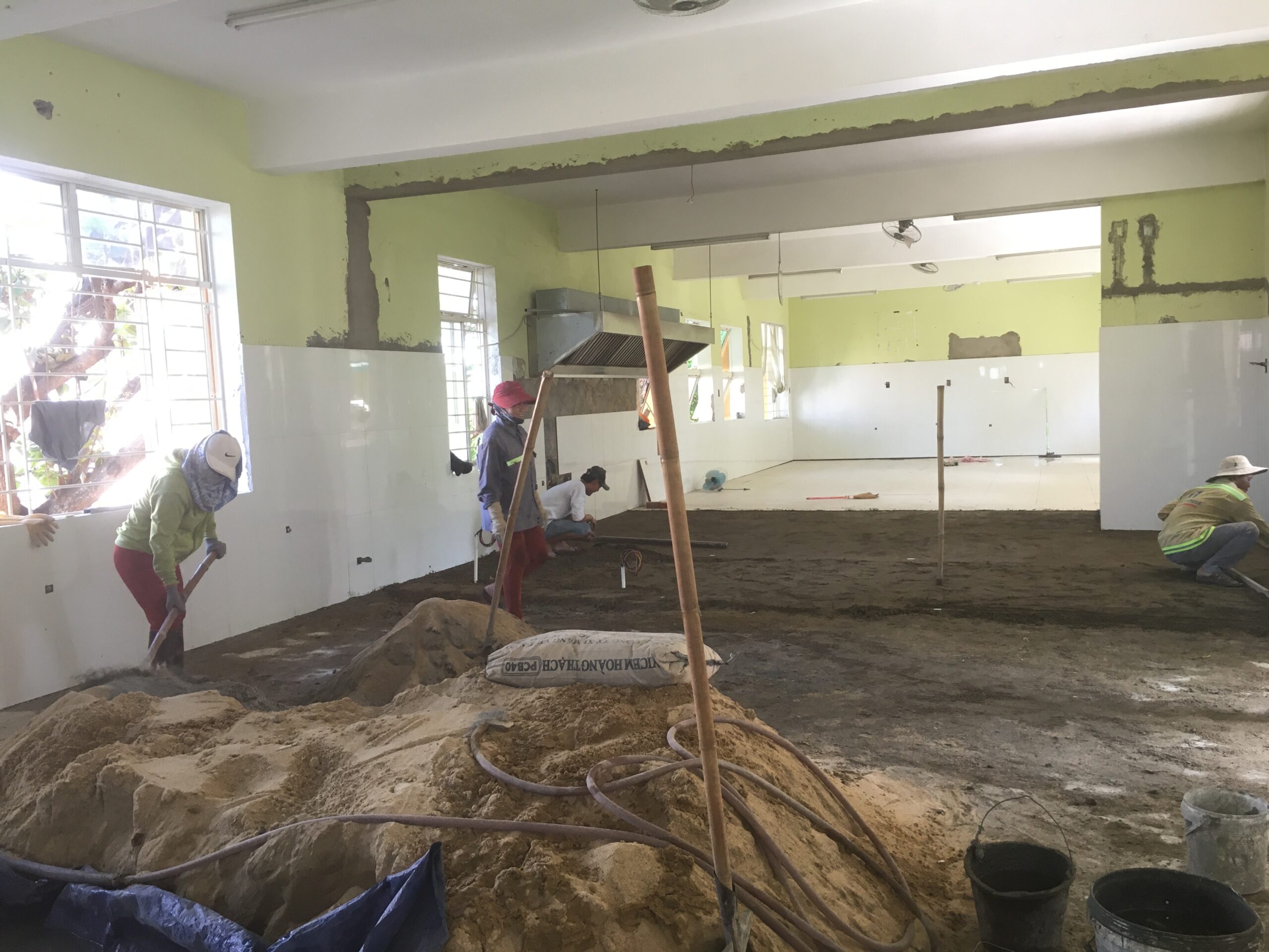 Nhà trường đã xóa 01 phòng học, nới rộng nhà bếp để đảm bảo quy mô, diện tích theo quy định. Hiện đang giai đoạn thi công và hoàn thiện. Chúng mình cùng chờ đón ngày nhà bếp khang trang, hiện đại hơn nhé!
